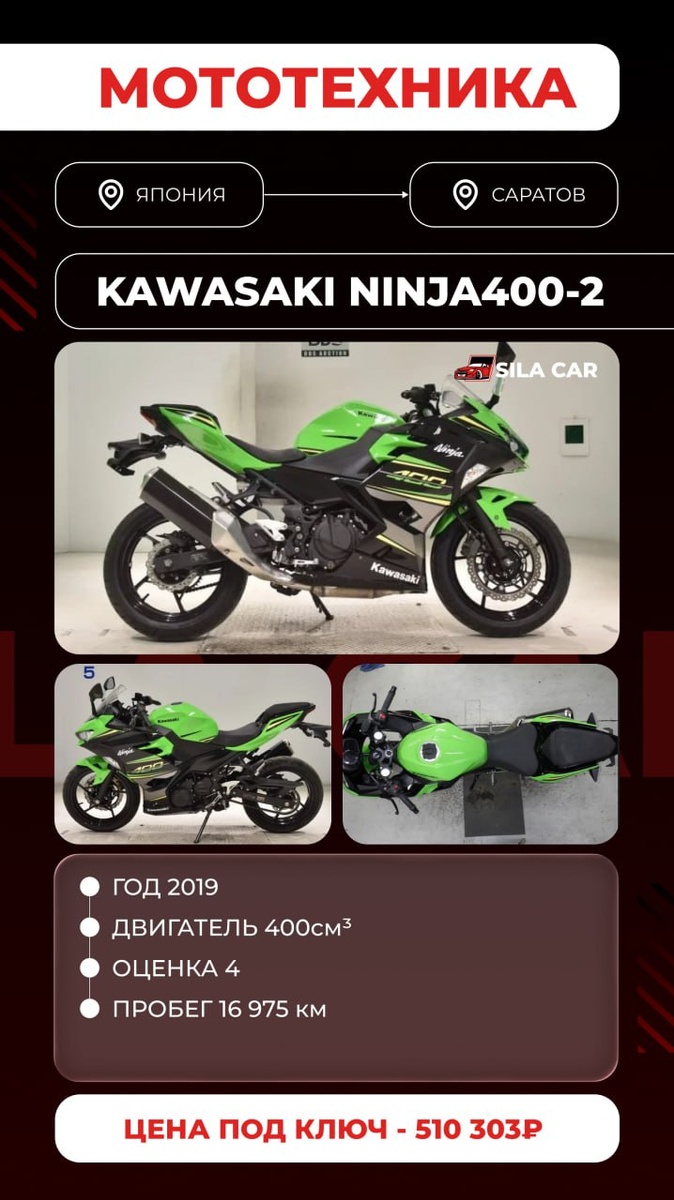 🔥 Никаких скрытых комиссий ❗️Работаем строго по договору ┏ Реально честная комиссия: ┣ 50 000₽ на авто до 1 млн ₽ ┣ От 1 до 2,5 млн. ₽ - 70.000₽ ┗ От 2,5 млн. ₽ - 100.000₽ САМЫЕ ЧЕСТНЫЕ ЦЕНЫ НА РЫНКЕ⬇️ Объём двигателя, см2 400 Мощность, л.с. 45 Цена "на кнопке" ¥430 000 р.223 643,00 Аукцион BDS Расходы по Японии ¥70 000 р.36 407,00 Фрахт $250,00 р.19 850,00 Итого стоимость по инвойсу ¥538 166 279 900,00 ₽ Таможенный сбор 2 134,00 ₽ Пошлина 41 985,00 ₽ Акциз 0,00 ₽ НДС 71 284,18 ₽ Брокерские услуги, СВХ, погрузо-разгрузочные работы, прохождение лаборатории р.55 000,00 Доплата за контейнер (раскрепление, хранение) р.0,00 Приёмка и забор мотоцикла с СВХ, доставка до лаборатории, доставка до стоянки р.10 000,00 Комиссия р.50 000,00 Итого во Владивостоке: 510 303,18 ₽ 🔴Купил менеджер Даниил 📞 +7(908)979-36-95 🔵@SilaCarDAN 👉Для ПОКУПКИ МОТО жмите сюда💪 💻Самостоятельный расчет на нашем сайте: silacar.ru Или звоните: 88007002375 ❗️А для тех,