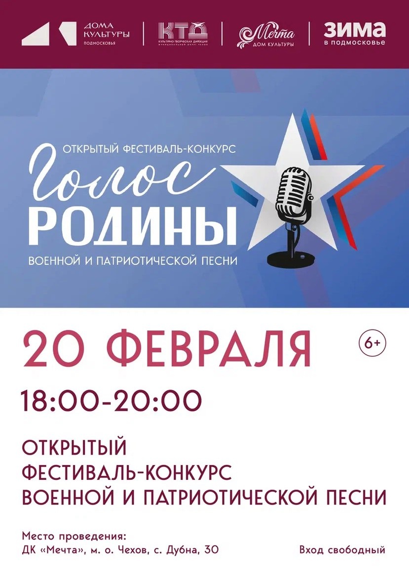 Дубна приглашает принять участие в конкурсе 🎉 Дом культуры «Мечта» приглашает всех Вас! ✅ У вас есть время до 10 февраля включительно, чтобы подать заявку! ✨ Участие абсолютно бесплатное, а возрастные категории охватывают всех от 4 до 99 включительно! 🙃 Звоните, пишите и узнавайте подробности по телефону 8-925-824-58-03 — Анастасия с радостью ответит на все вопросы! 📞 Не пропустите возможность реализовать свои мечты! 💫 📆 20.02.2026 🕛 18:00 🏢 ДК «Мечта» 📍 г.о. Чехов, с. Дубна, д.30 🪙 Вход свободный❗️ ⭐Поддержать канал голосом #МероприятияЧехов #детямЧехов #интересноЧехов #Дубна #конкурс ✅ Мероприятия Чехов https://dzen.ru/id/66cc4b48e9ef144699238a51 http://vk.com/chekhov_events http://dzen.ru/chekhov_events