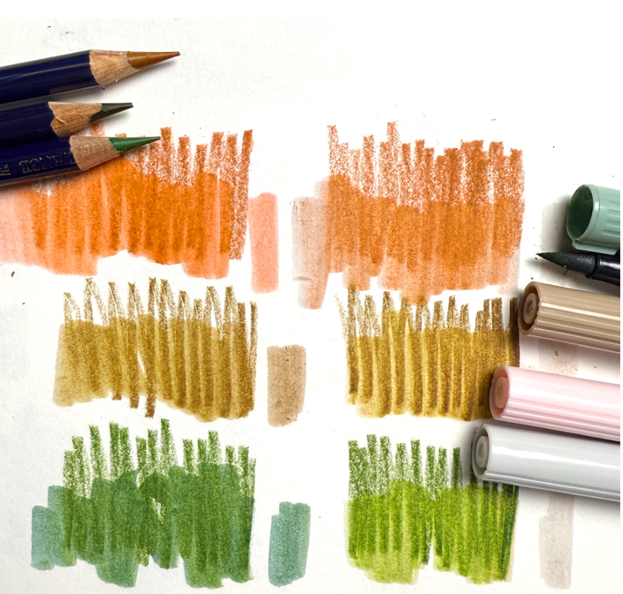 Я решила потратить несколько недель на то, чтобы познакомиться с карандашами Inktense. Много лет назад я купил набор из 72 карандашей и, хотя иногда ими пользовался, так и не изучил их как следует и не понял, чем они отличаются от акварельных карандашей (в частности, моего любимого «Альбрехта Дюрера» от Faber Castell). Пришло время начать их использовать... Мне нравится, что эти карандаши ведут себя непредсказуемо, когда их используешь впервые: приглушенные сухие штрихи превращаются в буйство красок, если добавить воды. Особенно хорош «Жженый апельсин»! Это был второй набросок, который я сделал вместе с ними, — собор Святой Марии. В том числе сочетую их с акварелью. Полет на самолете — идеальный способ начать ими пользоваться! Отступление: раньше я рисовала акварелью в самолете, но с контейнерами для воды и прочим было много возни, поэтому в последние годы я решила перейти на сухие (или быстросохнущие) материалы.