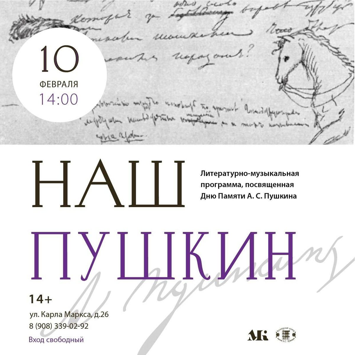🎼Казанцев приглашают на литературно-музыкальную программу, приуроченную ко Дню памяти Александра Сергеевича Пушкина