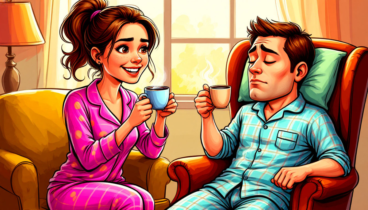 Оказалось, милая дама вставала в шесть утра, наводила красоту, делала завтрак и ждала, что её благоверный разделит с ней утренний кофе и душевные беседы о планах на день. А он, бедолага, засыпал около двух ночи, потому что именно в это время у него включался мозг и появлялось вдохновение. К шести утра он находился в той стадии сна, когда даже танки не разбудят.