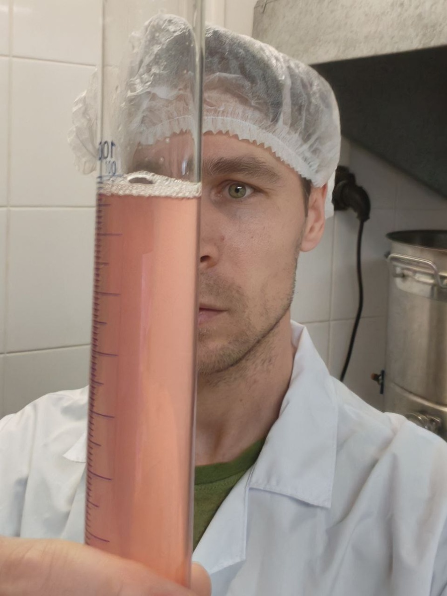 Друзья, вы под прошлыми постами определили явного фаворита — Малину. Признаюсь, для меня это был одновременно и вызов, и огромный интерес. Почему? Потому что малина — крайне капризная ягода. В ней столько природных сахаров, что для бактерий это не просто еда, а настоящее топливо. Именно такие ягоды в категории «взрывоопасные», когда речь идет об естественной газации. Но мы решили: когда, если не сейчас? Пора проверить нашу обновленную технологию в деле. Что в итоге в этой стеклянной колбе? 🟢 Тест технологии: Мы использовали малину как индикатор. Результат? Микроорганизмы работают в желаемых пределах, никакой лишней газации и «сюрпризов». Первый этап пройден! 🟢 Работа над эстетикой: Натуральная ягода капризна — при ферментации она часто теряет вид и становится блеклой. Этот вопрос нам еще предстоит проработать, чтобы напиток радовал глаз. 🟢 Честный состав: ягода, микроорганизмы, метабиотики. Никаких искусственных консервантов, наполнителей или усилителей вкуса. Но я буду с вами