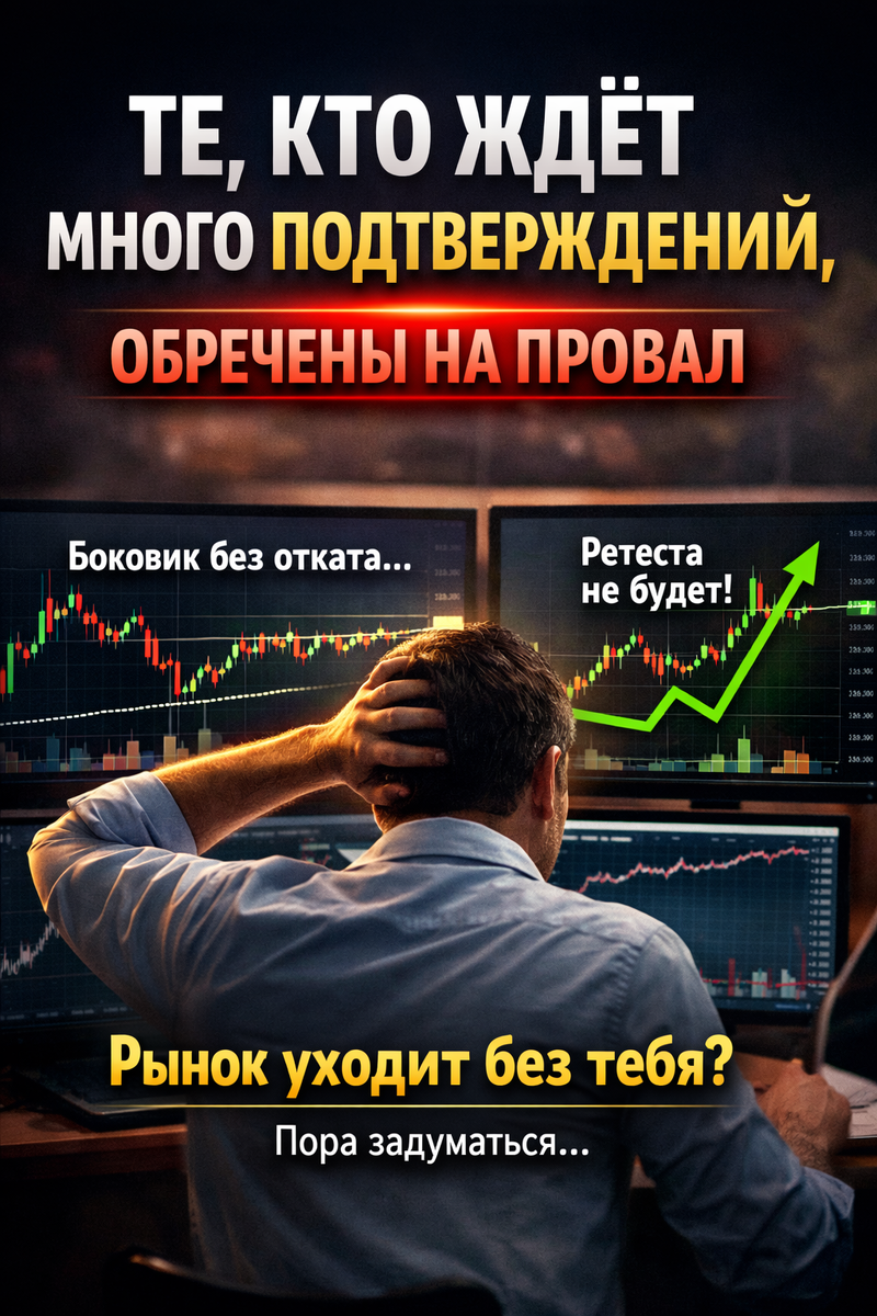 Когда я только начинал обучаться трейдингу, мне внушали одну мысль: «жди». Жди идеальной точки входа. Жди подтверждений. Жди, пока рынок всё покажет, разложит по полочкам и даст по максимуму безопасную сделку. В теории это звучит полностью логично, и с самим принципом терпения я до сих пор согласен. Умение ждать — важнейшее качество трейдера. Проблема начинается тогда, когда теория сталкивается с реальным рынком. Со временем, торгуя на практике, я начал замечать одну особенность, особенно на импульсных активах — таких как золото, биткоин, эфир. Эти рынки живут по своим правилам. И очень часто они просто не дают «идеальных» точек входа, к которым нас приучают на обучении. Почему рынок не даёт идеальных входов В учебниках и на большинстве обучающих материалов всё выглядит красиво: пробой уровня, откат, ретест — и только потом продолжение движения. Но в реальности такие сценарии случаются сильно реже, чем хотелось бы. Чаще рынок ведёт себя иначе. Актив начинает сильное движение, затем вхо