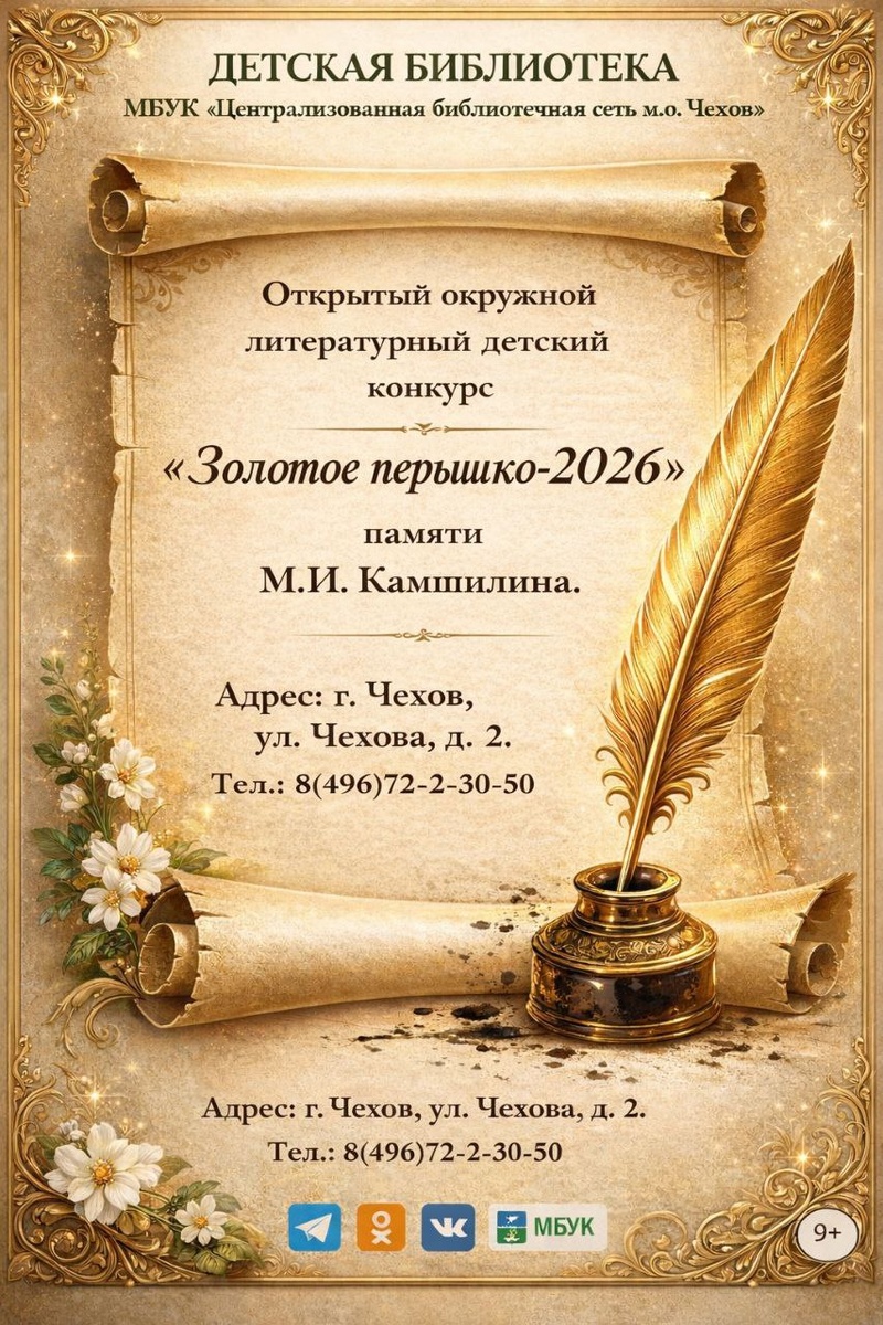 ✨ Литературное состязание среди молодёжи ➖Возраст от 9 до 17 лет. ➖Тема конкурса - «Единство народов России». ➖Принимаются стихи и короткие рассказы. Работы присылайте по адресу: chehov.detbibl@mail.ru до 12 апреля 2026 года. 📆 12.04.2026 🏢 Детская библиотека 📍 г. Чехов, ул. Чехова, д.2 ⭐Поддержать канал голосом ✅ Мероприятия Чехов https://dzen.ru/id/66cc4b48e9ef144699238a51 http://vk.com/chekhov_events http://dzen.ru/chekhov_events