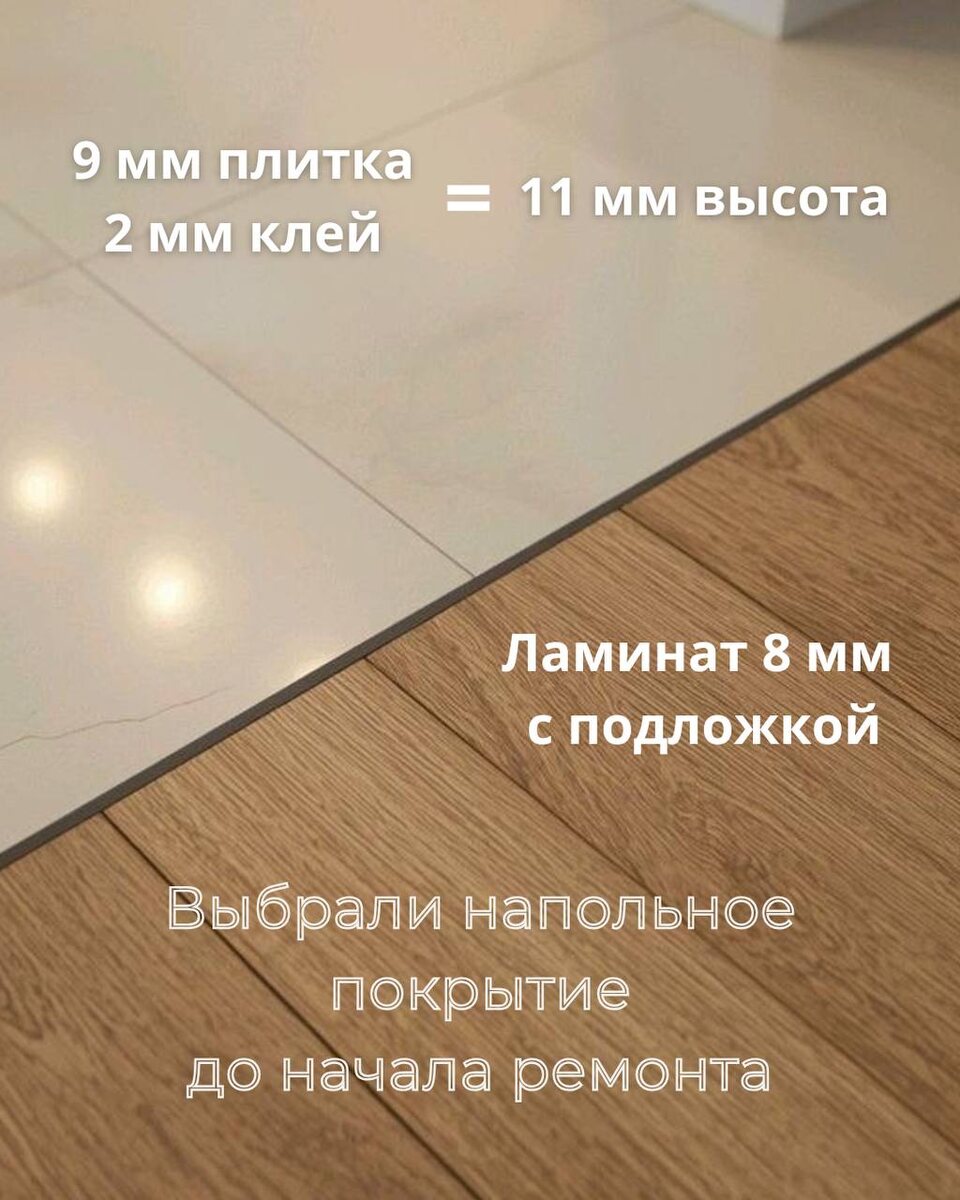 Это самые частые ошибки в начале ремонта. Я выделила основные, из-за которых потом придется добавлять лишнюю статью расходов. 1️⃣правило: если вы выбрали уже напольное покрытие — не меняйте решение! 2️⃣ правило: если все же решили изменить тип покрытия — найдите альтернативус той же толщины Строители уже заложили необходимую высоту стяжки, в последствии изменений вовремя ремонта, вы можете получить неприятный порожек на стыке.