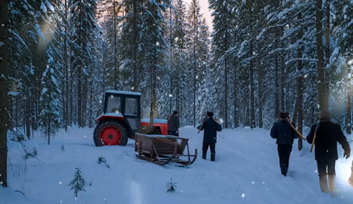 Зима в тот год выдалась на редкость снежной. Сугробы кое-где были по пояс взрослому мужчине. Трактор по целине пробирался неспешно, так что на место мы добрались лишь во второй половине дня. Машину остановили на поляне у дороги, и мужики, вооружившись пилами и топорами, шустро разбрелись по лесу.