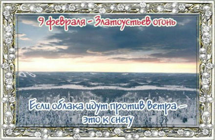 В понедельник 9 февраля 2026 года по приметам можно определить погоду на ближайшие дни. В народном месяцеслове день получил название Златоустьев огонь, или Златоустов день.