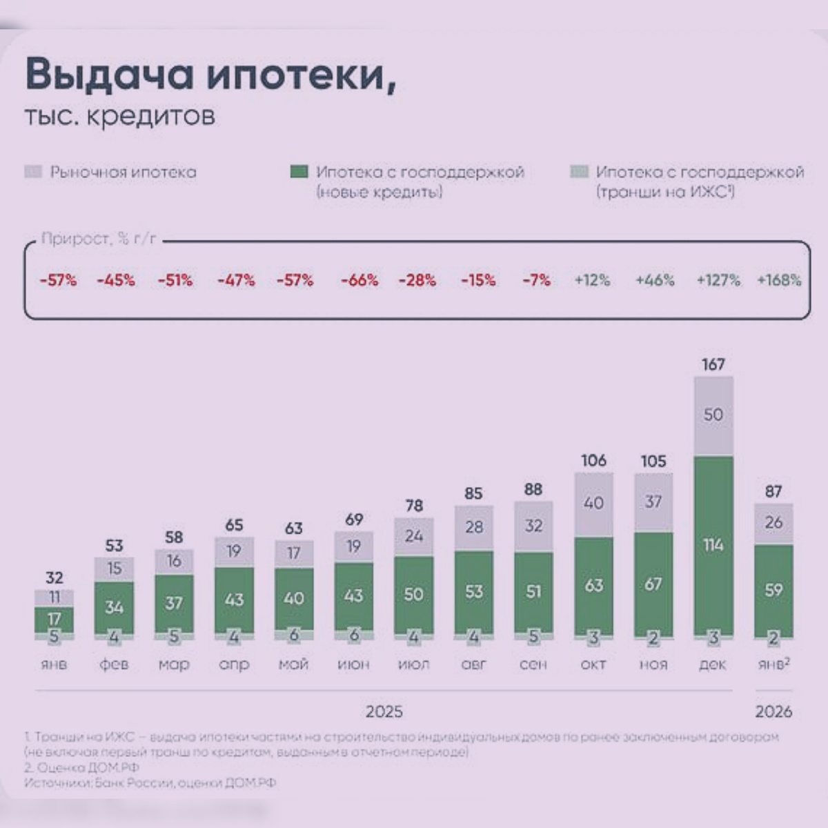 Представьте: в этом январе ипотеки выдали в 2,7 раза больше, чем год назад! А по деньгам — в 3,4 раза!