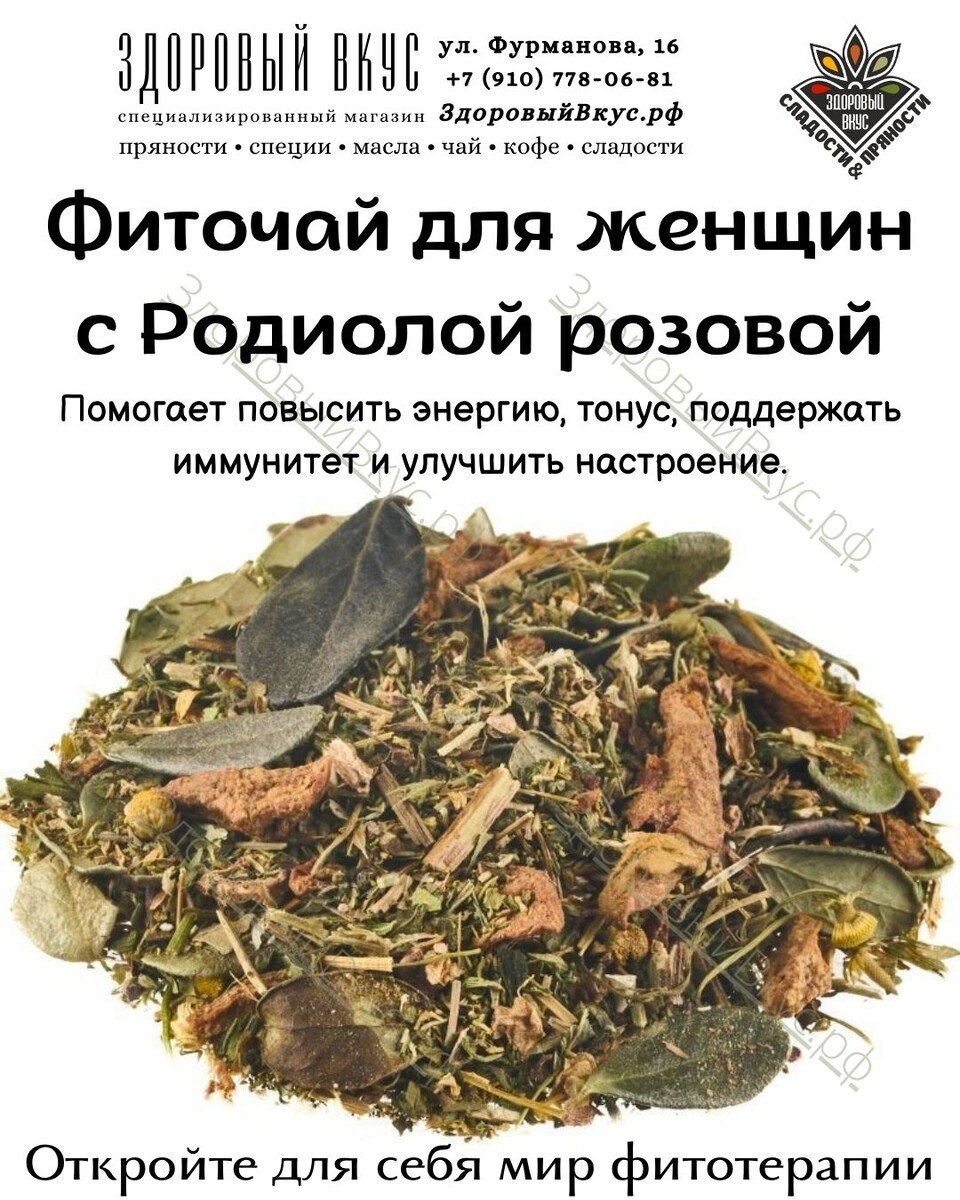 🌸 Фиточай для женщин с Родиолой розовой — это уникальный травяной сбор, созданный специально для поддержки женского здоровья и красоты. Каждый ингредиент этого чая обладает особыми свойствами, которые делают его незаменимым в повседневном уходе за собой. Давайте подробнее рассмотрим, что скрывается в этом чудесном фитосборе и как он может быть полезен именно для женщин. Это не просто напиток, а настоящая находка для любящих заботиться о своем здоровье. Этот травяной сбор объединяет в себе силу лечебных трав, которые помогут вам чувствовать себя лучше каждый день. 🌼▎Родиола розовая (Rhodiola rosea) Родиола розовая, также известная как золотой корень, содержит фитоэкдистероиды и розавины. Эти биологически активные компоненты помогают улучшить адаптацию организма к стрессовым ситуациям, повышая устойчивость к эмоциональным и физическим нагрузкам. Для женщин родиола способствует улучшению настроения, снижению симптомов предменструального синдрома и поддержанию гормонального баланса. Корн