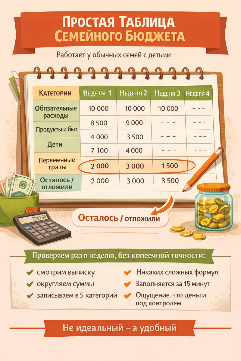 Потому что их делают финблогеры, а не мамы, которые приходят с работы, готовят ужин и проверяют уроки. Сегодня покажу подход, который реально используют семьи с детьми и зарплатой, а не «идеальные бюджеты». Если коротко — они слишком сложные. Обычно там: Через 5–7 дней происходит одно и то же:
