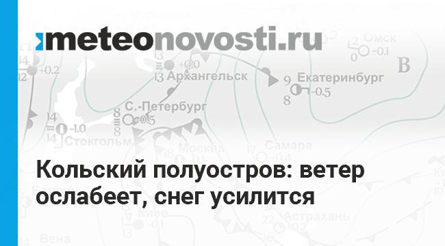 Малооблачно, без существенных осадков и морозно. Но и циклон с центром над Ямалом напоминает о себе. 7 и ночью 8 февраля в Мурманской области прошел небольшой снег, мела метель, ветер в порывах усиливался до 24 м/с. Антициклон начнет смещаться на юг, влияние атмосферных фронтов циклона ненадолго усилится. До конца суток 8 февраля на севере Кольского полуострова пройдет сильный снег, разыграется метель при ветре в порывах до 15-20 м/с, на дорогах скользко. Перейти на сайт Прогноз погоды на 14 дней