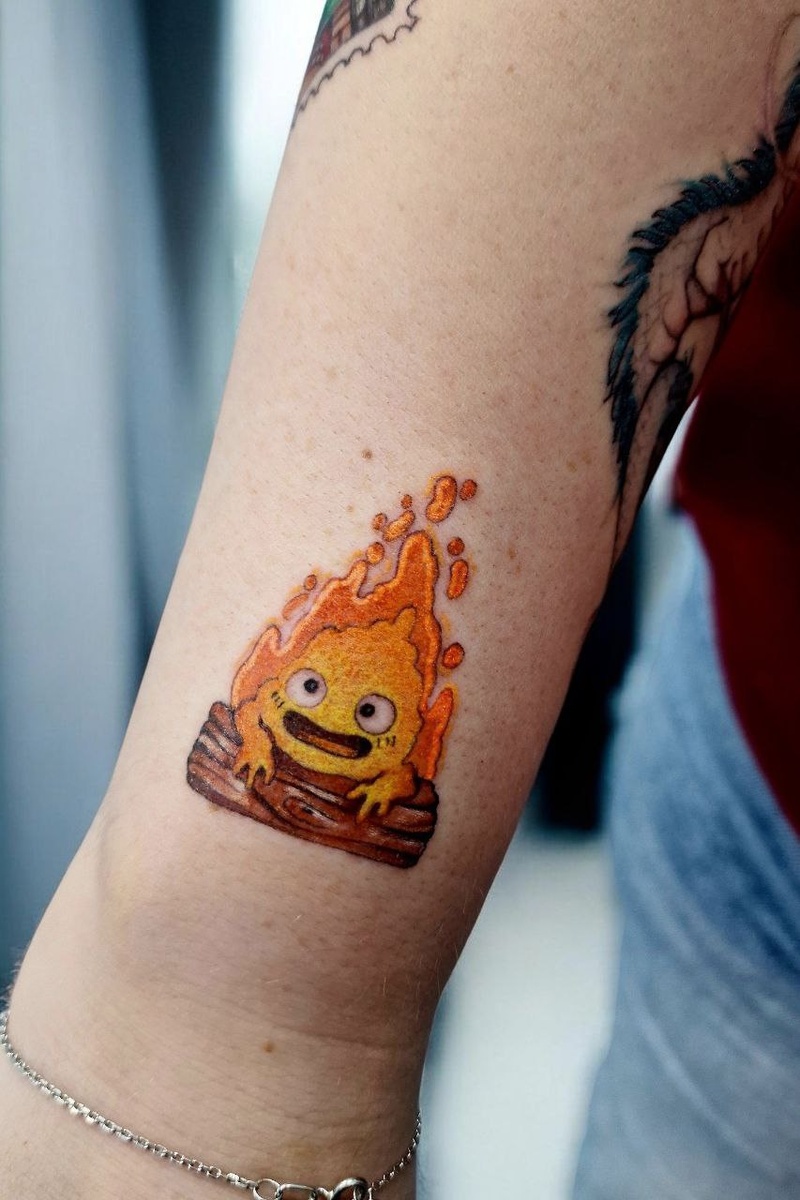 Он даёт энергию ходячему замку и отвечает за его движение. Хитрый, язвительный, но по-своему надёжный. Не герой и не злодей, а живой огонь со своим характером. Написать мастеру http://t.me/alexandradulchy ТАТУ ДЛЯ ПЕРЕХОДА