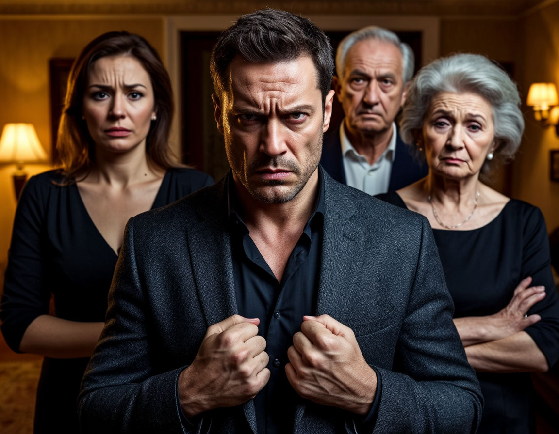 Я стоял посреди собственной гостиной, чувствуя, как кровь стучит в висках. Вокруг — тишина. Сорок человек гостей замерли с бокалами в руках, а моя мать продолжала говорить, словно не замечая, что творит.