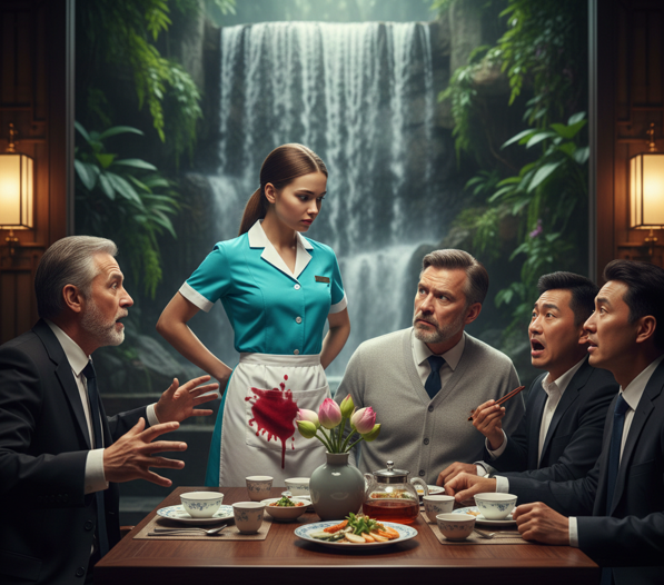Когда она вернулась с фарфоровым чайником, беседа за столом накалилась. Один из партнеров, господин Чжан, активно жестикулировал, доказывая что-то Арсентьеву. Даша подошла с левой стороны, как требовал этикет. В этот момент Чжан резко взмахнул рукой, отбивая какой-то аргумент, и ударил Дашу под локоть.