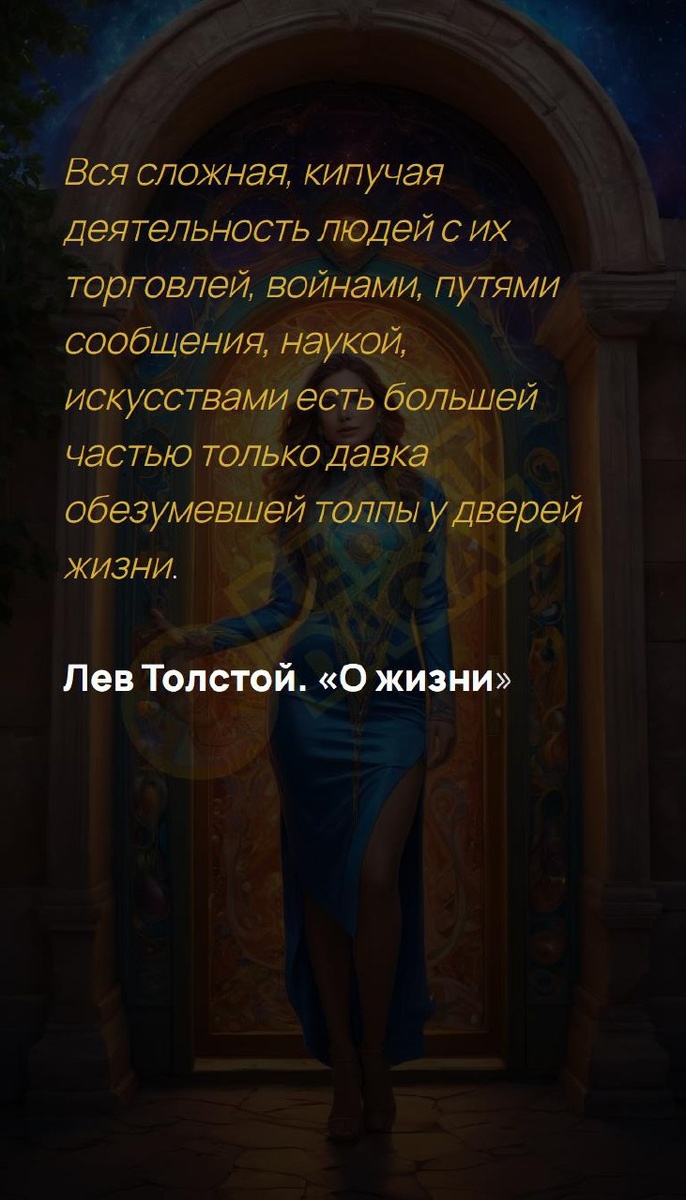 Вся сложная, кипучая деятельность людей с их торговлей, войнами, путями сообщения, наукой, искусствами есть большей частью только давка обезумевшей толпы у дверей жизни. Лев Толстой. «О жизни» Матрица судьбы | Матрица судьбы T | VK | Pin | YouTub | Dzen #бодрость #новоесознание #счастьебытьвместе #архитекторсудьбы #ментальноездоровье #магнитдляденег #духовныйрост #внутренниймир #взаимность #8число #8февраля