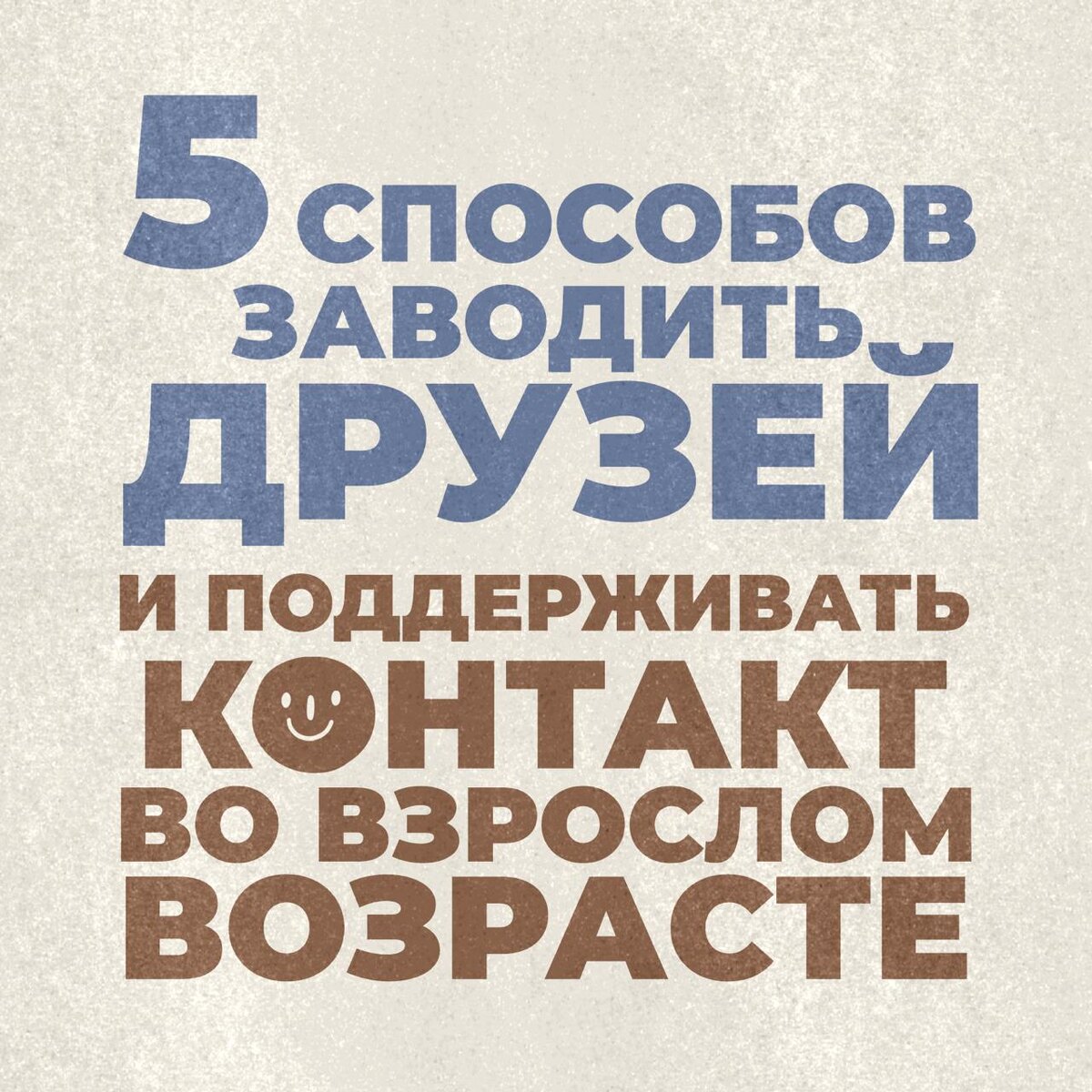 Многие из нас уже более или менее привыкли к мысли, что над романтическими отношениями нужно работать. А вот дружба часто воспринимается как нечто само собой разумеющееся. Именно из-за этой установки новые связи во взрослом возрасте почти не возникают, а старые постепенно сходят на нет*. Что с этим делать? Вот несколько советов, которые помогут выстроить и поддерживать дружеские связи, сколько бы вам ни было лет. 1. Выбирайте места, где люди встречаются регулярно Дружба во взрослом возрасте зачастую рождается не из мгновенной симпатии, а из повторяющихся встреч в одном и том же пространстве: на занятиях, тренировках, в профессиональных сообществах или в рамках волонтёрских проектов**. Для формирования близкого контакта нужно время, так что запаситесь терпением. 2. Берите на себя инициативу Представьтесь, задайте вопрос, сделайте комплимент, предложите продолжить общение, не ожидая, что собеседник сделает это первым. В худшем случае вы получите отказ, но потренируете свои социальны