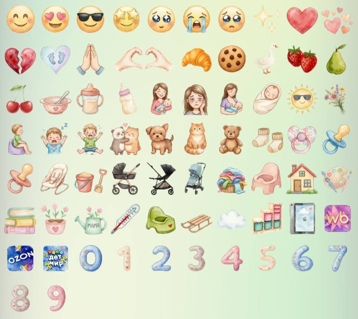 Теперь каждый раз, когда кормлю Василису, создаю и улучшаю свои эмодзи паки 📋 👥: Как часто ты кормишь ребенка? Я: да 🫶🫶🥐🍪 🐇🥚🐞🍯 🤍😇🩷💐 🛷🎁🍭🧢 🙆💅🩷🧤 🍼🎂🩲🎨 Такие наборы получились 😌