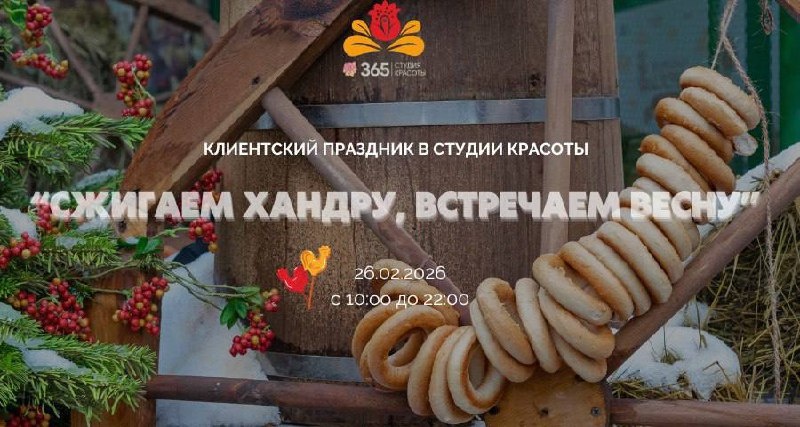 «Сжигаем хандру, встречаем весну»🌿🔥 Зиму важно не просто пережить - её нужно красиво проводить. 26 февраля наша студия станет тёплым местом силы, где можно оставить усталость, выдохнуть и мягко настроиться на весну. В этот день 365 — про заботу, обновление и ощущение «мне хорошо здесь и сейчас». Что мы для вас приготовили: 🥞Тёплое угощение для всех гостей Ароматные блины с домашним вареньем и согревающий чай — как в детстве, уютно и по-настоящему. 🔥Ритуал «Сжигание зимней хандры» Напишите на листке то, что хочется оставить в зиме: усталость, тревоги, сомнения - и символично отпустите это в нашем «костре». Вместе закроем сезон и откроем новый. ✨Горячие акции для красоты и настроения: • –20% на все услуги студии (стрижки, окрашивания, маникюр, уход) • –20% на косметику, бижутерию и аксессуары • +20% к номиналу подарочных сертификатов 🗓26 февраля ⏰с 10:00 до 22:00 Приходите за красотой, теплом и ощущением обновления. Давайте встречать весну легко, красиво и вместе😍