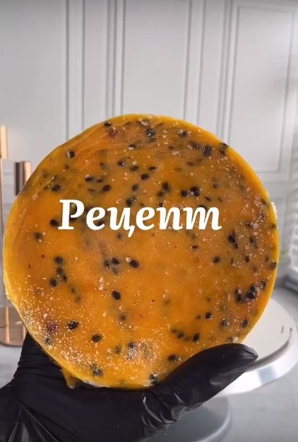 " 🥭 - 100г пюре манго - 100г пюре маракуйя с косточкой - 4 ст.л сахара - 4 г пектин NH (яблочный цитрусовый или какой либо другой не подходит, желатином и агар-агаром тоже не заменяем😉) - Щепотка лимонной кислоты 1. Пюре манго маракуйя помещаем в сотейник и ставим на огонь, чуть выше среднего, доводим до 40° затем смешиваем сахар с пектином и всыпаем на пюре не переставая мешать, доводим эту смесь до кипения и когда начнёт все активно кипеть добавляем лимонную кислоту, уменьшаем огонь и провариваем на медленном огне минутки две. 2. После снимаем с огня. 3. Кольцо для выпечки 14-15 см обтягиваем пищевой плёнкой и фольгой ставим на подложку либо на какую-то твердею поверхность. 4. Переливаем готовое конфи в кольцо и отправляем в морозилку на 4-6 часов. 5. Во время сборки торта достаем из морозилки и снимаем из кольца.