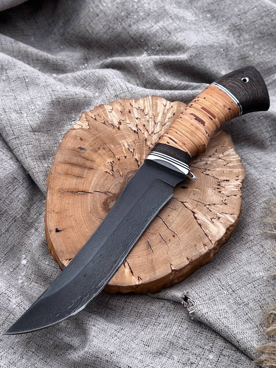 ! ⠀ Сталь Х12МФ (твердость 61-62 HRC) — прочность, выносливость, долгий срок службы заточки. Такой нож не подведёт в самых жёстких условиях: охота, рыбалка, туристические походы, работа по дереву и в полевых условиях. Рукоять из бересты — тёплая, лёгкая и не скользит даже во влажных руках. Гарда — специальной формы, защищает от соскальзывания руки. Заточка «в бритву» — режет легко и точно, сразу из коробки готов к работе. Кожаные ножны — в комплекте. *Дополнительно* можем изготовить формованные ножны (+8000 руб.). Цена: ~10.648~ → 9.050 рублей со скидкой! Как заказать? Пишите в Telegram: [@Nazarklinokbot](https://t.me/Nazarklinokbot), или WhatsApp/Viber: [ +79101343831](https://wa.me/79101343831) #нож #охота #рыбалка #ручнаяработа #кузницаНазарова #Х12МФ #Спецназ #подарокмужчине