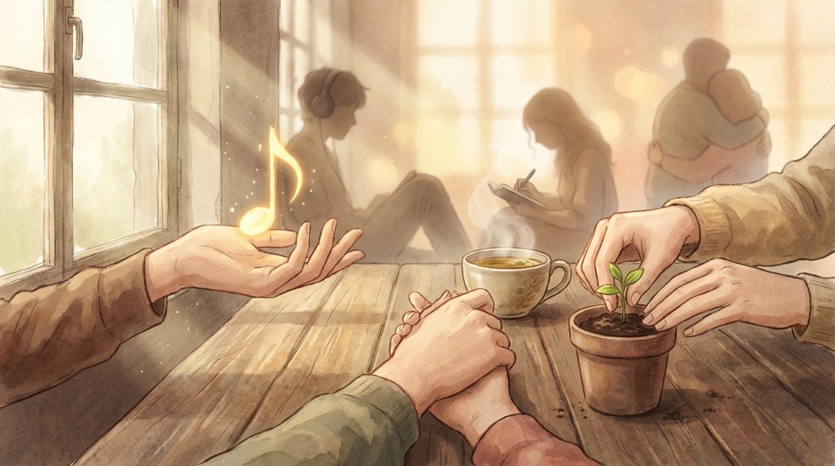 Просто спасибо. Знаете, что самое странное в этом деле? Мы делаем песни-аффирмации. Вроде как помогаем вам. А по факту — вы помогаете нам. ─────────────────── КАЖДЫЙ РАЗ, КОГДА ВЫ: Пишете: _«Эта песня спасла мне утро»_ — мы сидим и тупо улыбаемся в экран. Комментируете: _«Слушаю третий день, что-то меняется...»_ — мы перечитываем по 10 раз. Ставите лайк — мы думаем: «Значит, не зря.» Делитесь с друзьями — мы чуть не плачем (серьёзно). ─────────────────── МЫ НЕ ГУРУ. МЫ НЕ КОУЧИ. Мы обычные люди, которые тоже: - Тупят в понедельник - Боятся облажаться - Сомневаются: «А вдруг это никому не нужно?» И потом читаем ваши комментарии. И думаем: «Блин. Нужно.» ─────────────────── ВЫ ПИШЕТЕ НА YOUTUBE, В TELEGRAM, ВКонтакте, RUTUBE. Каждый комментарий — это как глоток воздуха для нас. _«Спасибо, я перестала бояться звонить клиентам»_ _«Слушаю перед сном. Первый раз за месяц заснула без таблеток»_ _«Включаю дочке перед садиком. Она стала спокойнее»_ _«Я не верил в это. Но п