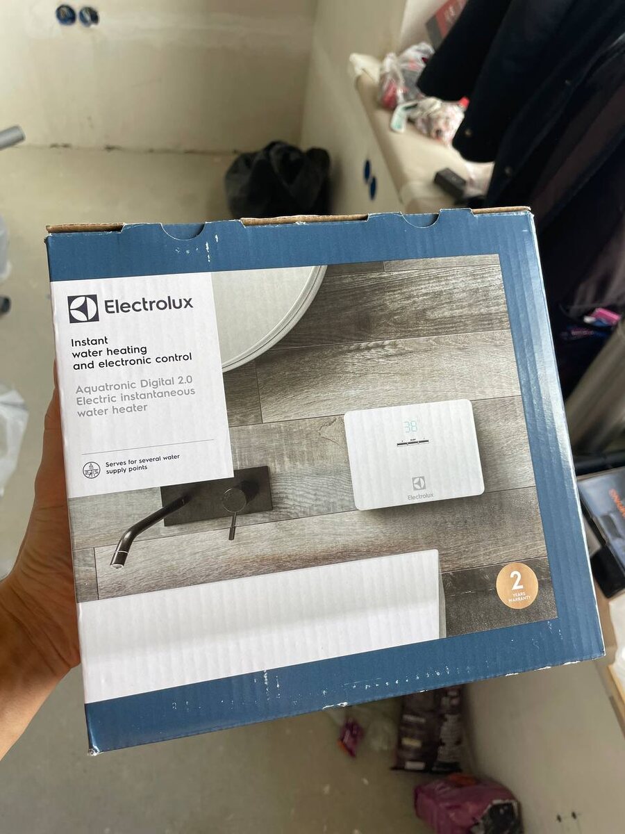 В этот раз решили проточник поставить. Накопительный не влазит, и он тухнет за год неиспользования. На районе своя котельная, и соседи говорят, горячую воду летом на 2 недели не отключают. Но на всякий случай надо поставить. Вдруг начнут отключать. Заказали вот такой на 5,5 кВт (8 645 руб.) – https://market.yandex.ru/cc/8jQSM9. Он размером с полкирпича. Сомнительно, что прямо горячей (40 градусов) сделает воду, но помыться летом тепленькой водой, наверное, хватит. Подключу, затестим. #ремонт