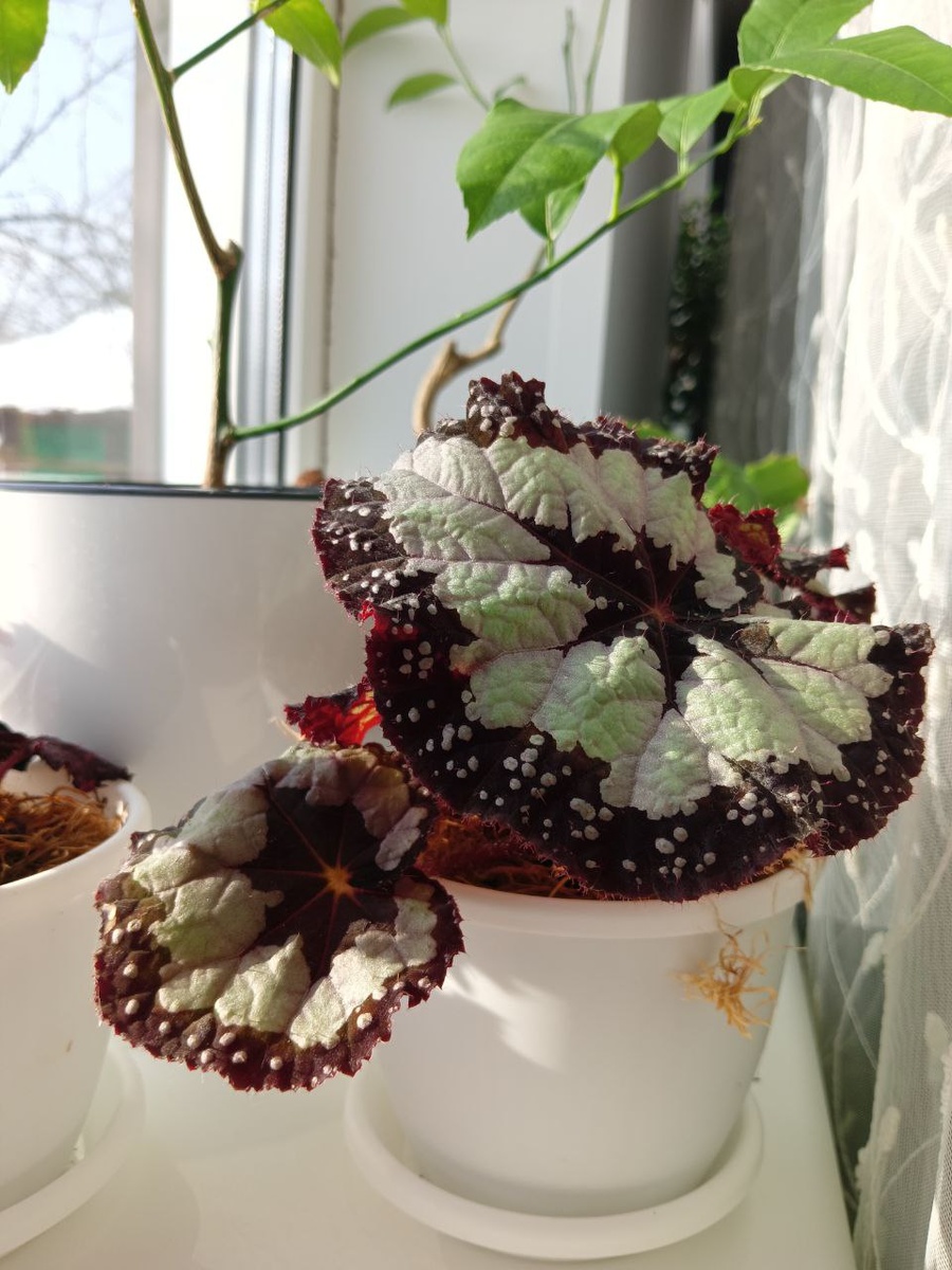 Сегодня у меня перестановка, словно в театре: бегонии и фаленопсисы меняются ролями и местами. Бегонии, словно южные красавицы, перебрались на южные окна, где солнце щедро осыпает их своим светом. Их бархатистые листья, будто окутанные серебристой пылью, переливаются в лучах, отражая небесную чистоту. Эти растения – настоящее чудо, каждый их листок – тончайшее произведение искусства, будто расписанное волшебной кистью самого художника.