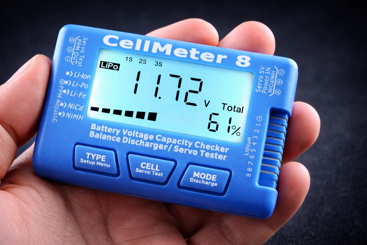 Тестер аккумуляторов RC CellMeter-8 — полезный инструмент для тех, кто регулярно работает с аккумуляторами и хочет понимать их реальное состояние, а не ориентироваться на догадки. Устройство подходит для проверки LiPo, Li-Ion, Li-Fe, NiCd и NiMH батарей, поэтому одинаково хорошо вписывается в набор моделиста, радиолюбителя или владельца портативной техники.