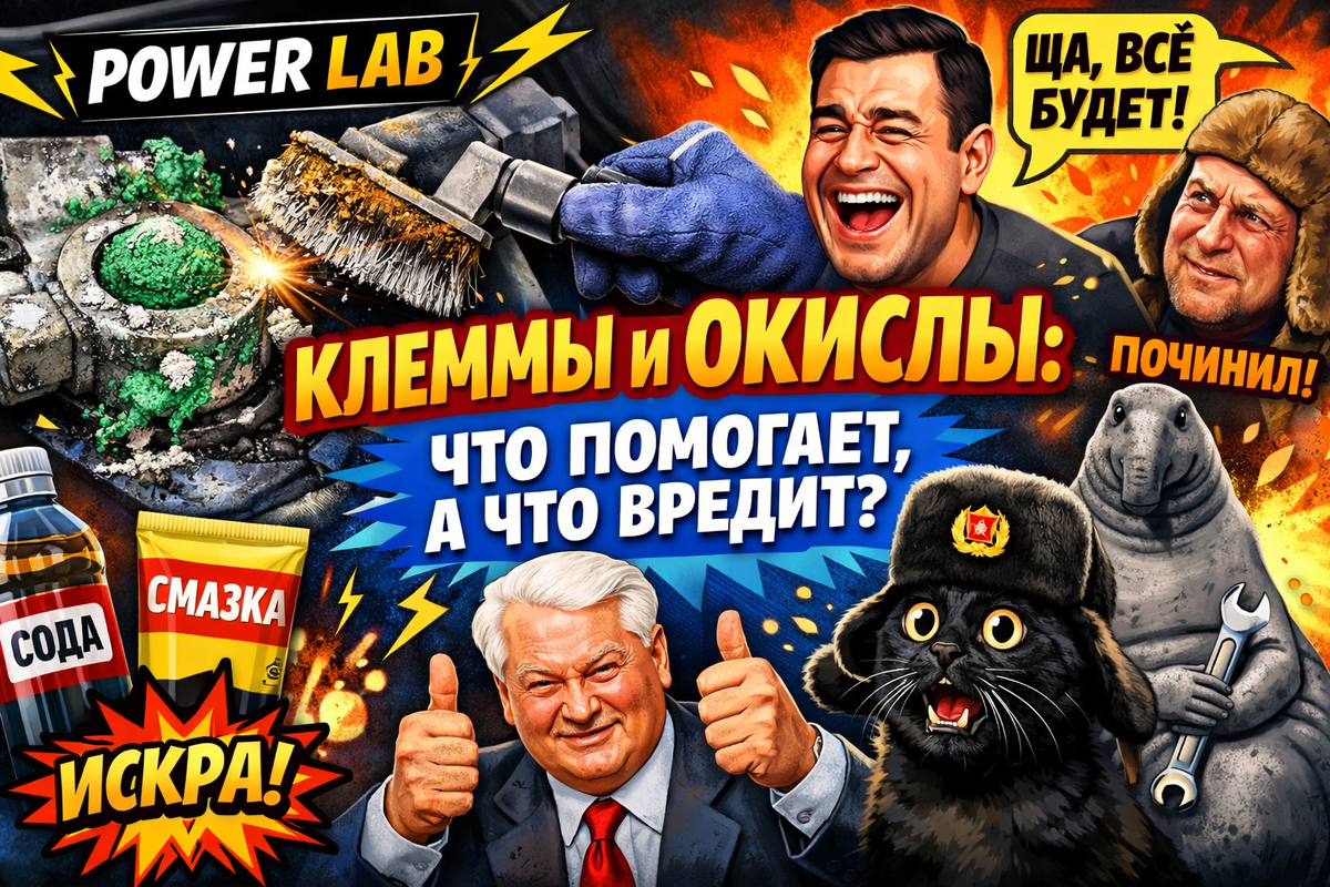 Окислы на клеммах — это не “косметика”. Это лишнее сопротивление, просадки, глюки, плохой запуск и вечная пляска с зарядкой.