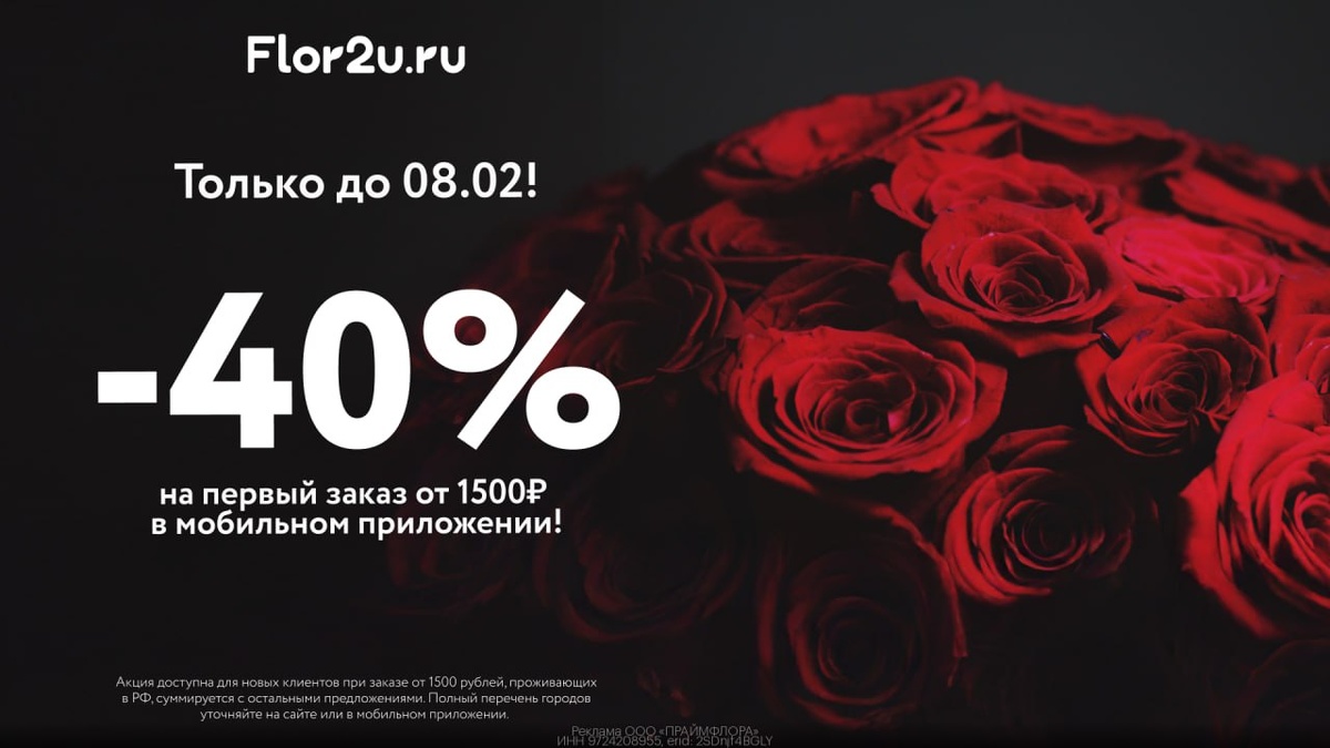 🌸 Только до 08.02! Чтобы улучшить настроение в холодное время года — покупайте небольшие букетики каждую неделю! И украшайте интерьер 🌷 И делать это можно с суммирующейся скидкой в 40% Переходи по ссылке: vk.cc/cUbKLR Вводи промокод — FCF_566WGC5 Забирай скидку 40% на первый заказ цветов от 1500₽ 🌷 Всегда свежие цветы! Если быстро завянут — заменят букет