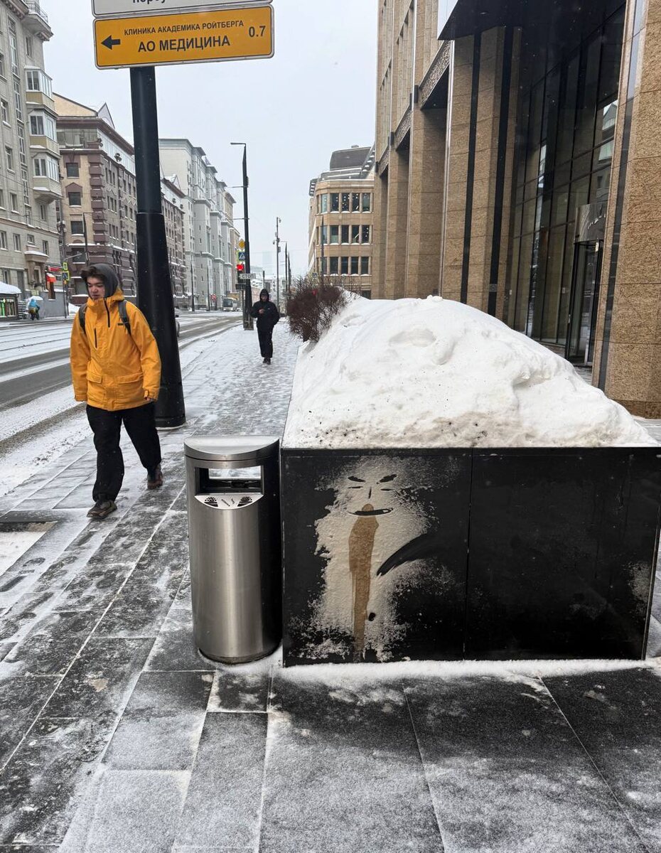 Если бы Бэнкси жил в России. Снежный арт в ресторанном районе на Белорусской