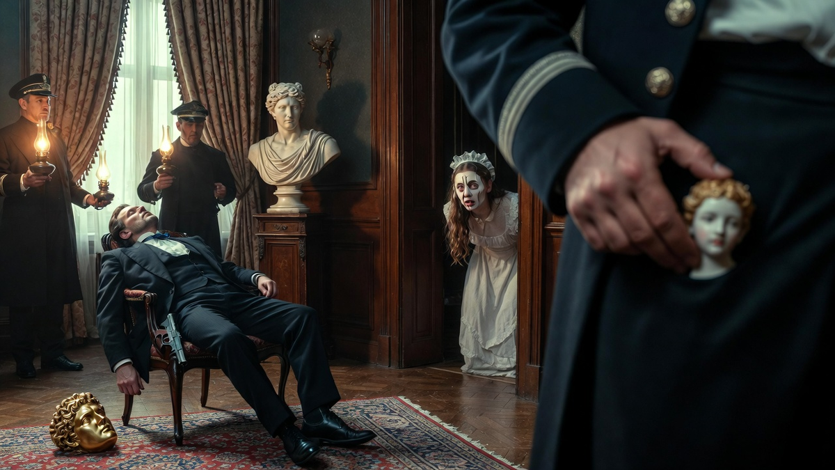 — Нет. Поза неудобная. Пороховой ожог не соответствует. И главное… — он понизил голос, — на столе лежала маска. Карнавальная маска Аполлона, позолоченная. Такие были на балу у Шереметьевых. И она… была надета на лицо другого предмета. На бюст Нерона. Словно шутка. Или знак.