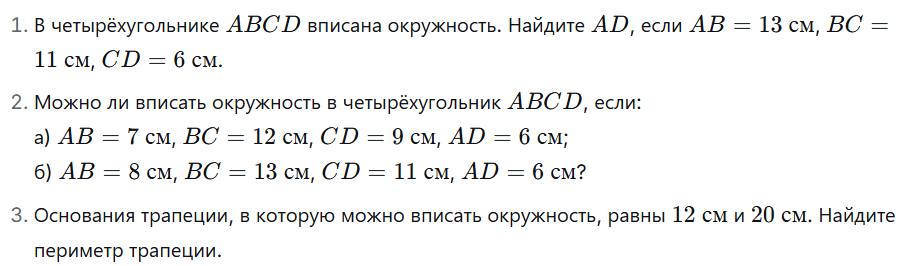 Г8 ДЗ Окружность вписанная в четырёхугольник