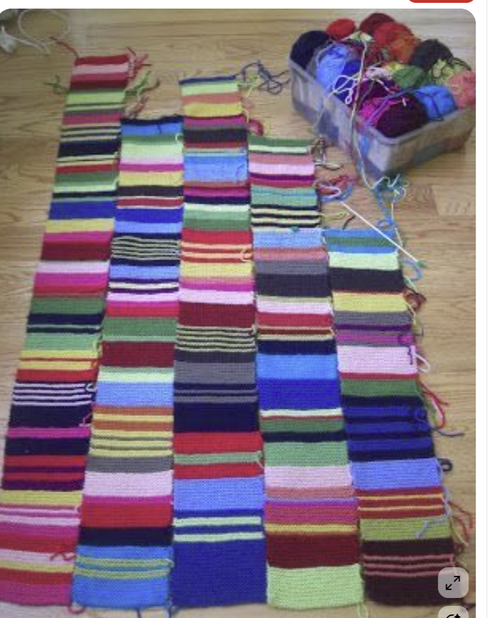 Привет, дорогие рукодельницы и рукодельники! 😊 Хотите создать уютный плед, не тратя кучу денег на новую пряжу? У вас в ящике скопились остатки пряжи от прошлых проектов? Не спешите их выбрасывать, ведь из них получится потрясающий плед! Сегодня я поделюсь с вами простой техникой создания пледа из полос. Поверьте, это под силу даже тем, кто только делает первые шаги в вязании. 🪀Суть идеи проста. Вяжем отдельные полосы нужной длины, а потом соединяем их в единое полотно. Получается ярко, оригинально и очень уютно. Такой плед станет не только практичной вещью, но и украшением интерьера. А ещё отличным подарком, сделанным с душой. Полосы для пледа можно вязать двумя способами: спицами или крючком, выбирайте то, что вам удобнее. Вариант 1. Самый простой — все петли лицевые.