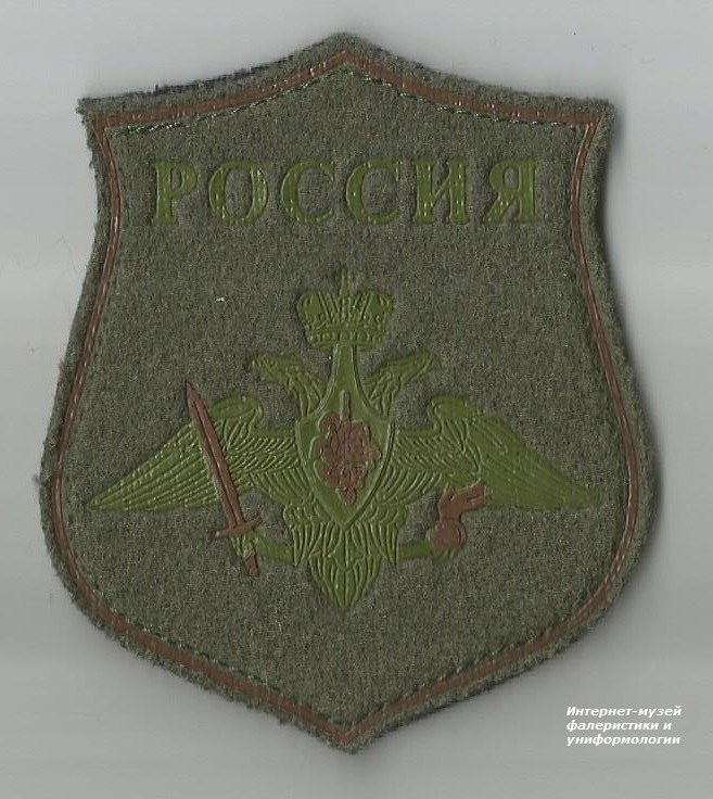 Представляет собой тканевую нашивку в форме щита защитного цвета (щит четырехугольный, заостренный в головной части и оконечности, с вогнутыми боковыми сторонами и закругленными нижними углами) с кантом зеленого цвета. В центре нарукавного знака — изображение средней эмблемы Сухопутных войск зеленого цвета. Над средней эмблемой Сухопутных войск — надпись зеленого цвета «РОССИЯ». Погоны курсантов командных и военно-политических училищ Ракетных войск и артиллерии, танковых, инженерных, железнодорожных, химических, автомобильных, строительных войск, войск связи, ПВО и топографической службы для парадной и повседневной формы одежды образца 1973 года.
