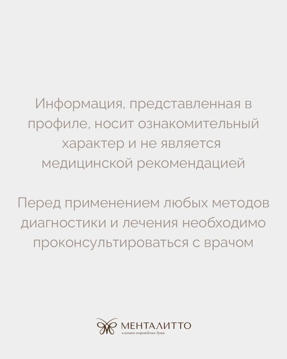 Они не заменяют очную консультацию врача. Диагностика и лечение подбираются индивидуально и возможны только в рамках работы со специалистом🤍 Записаться на прием @mentalitto +79266726360 Ежедневно с 10.00-22.00 Больше о клинике — mentalitto.ru 🤍
