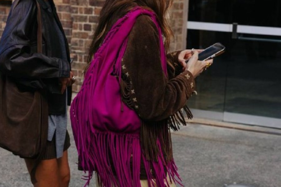 За последние годы мы успели привыкнуть к тому, что, чтобы считаться модным и разбирающимся в актуальных трендах, нужно быть максимально сдержанным и элегантным в вопросах стиля и в моде, и в красоте. Тем не менее, как мы все прекрасно знаем, современная мода — это процесс цикличный. Постепенно тенденция к более акцентным образам начинает возвращаться, а мы все чаще и чаще видим смелые решения дизайнеров и уникальные наряды на красных дорожках, подиумах и даже в социальных сетях. Если вы тоже хотите несколько обновить свой гардероб, но к радикальным переменам в нем пока не готовы, рассказываем, какие максималистские сумки можно добавить в образ в качестве аксессуара. Первая модель сумок, которая будет актуальна в первой половине года, была востребована еще в предыдущем весенне-летнем сезоне. Ею стали почти все варианты с декором в виде бахромы. Особенным же трендом станет опция из бежевой или карамельной замши, вся нижняя часть которой покрыта той самой бахромой. Данный стиль дает совр