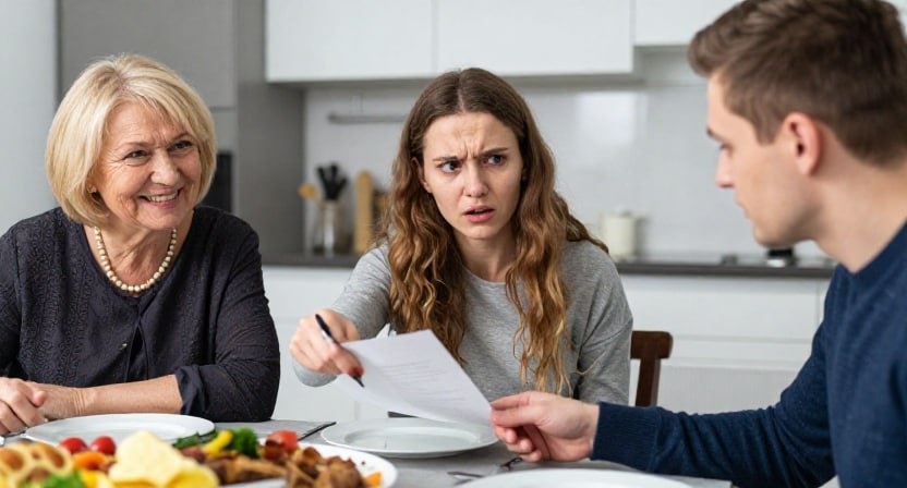 — Вот именно! — подняла палец свекровь. — Твоё. А ты замужем. Значит, всё должно быть общим. Мы посоветовались с юристом. Чтобы обезопасить нашу семью от рисков — вдруг ты потеряешь работу, или влезешь в долги, ты же молодая, неопытная, — мы решили переоформить недвижимость на меня. Я человек пожилой, надежный, у меня льготы по налогам.