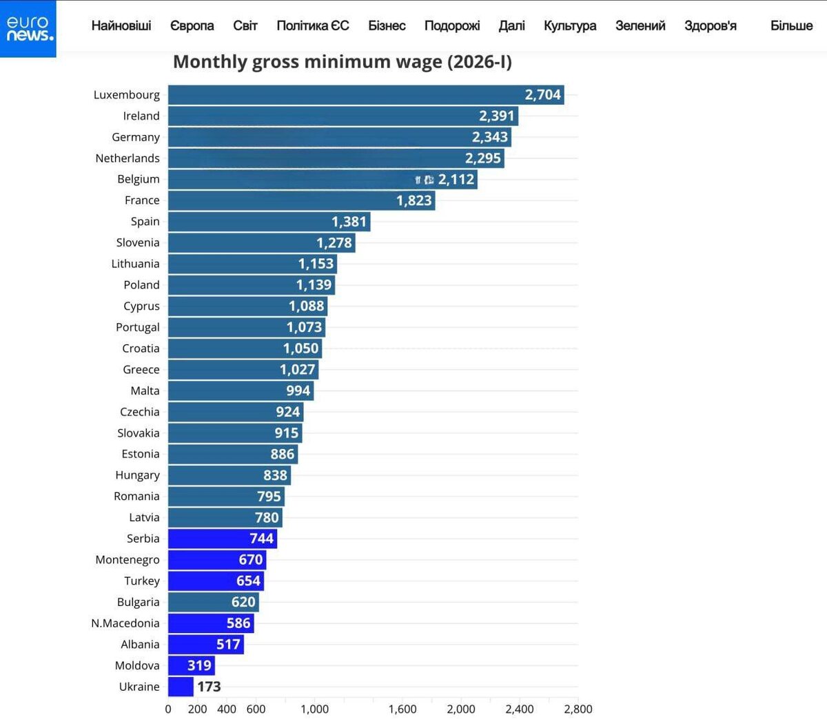 ⚡️🇪🇺Евростат опубликовал рейтинг с самыми высокими и самыми низкими зарплатами в Европе
