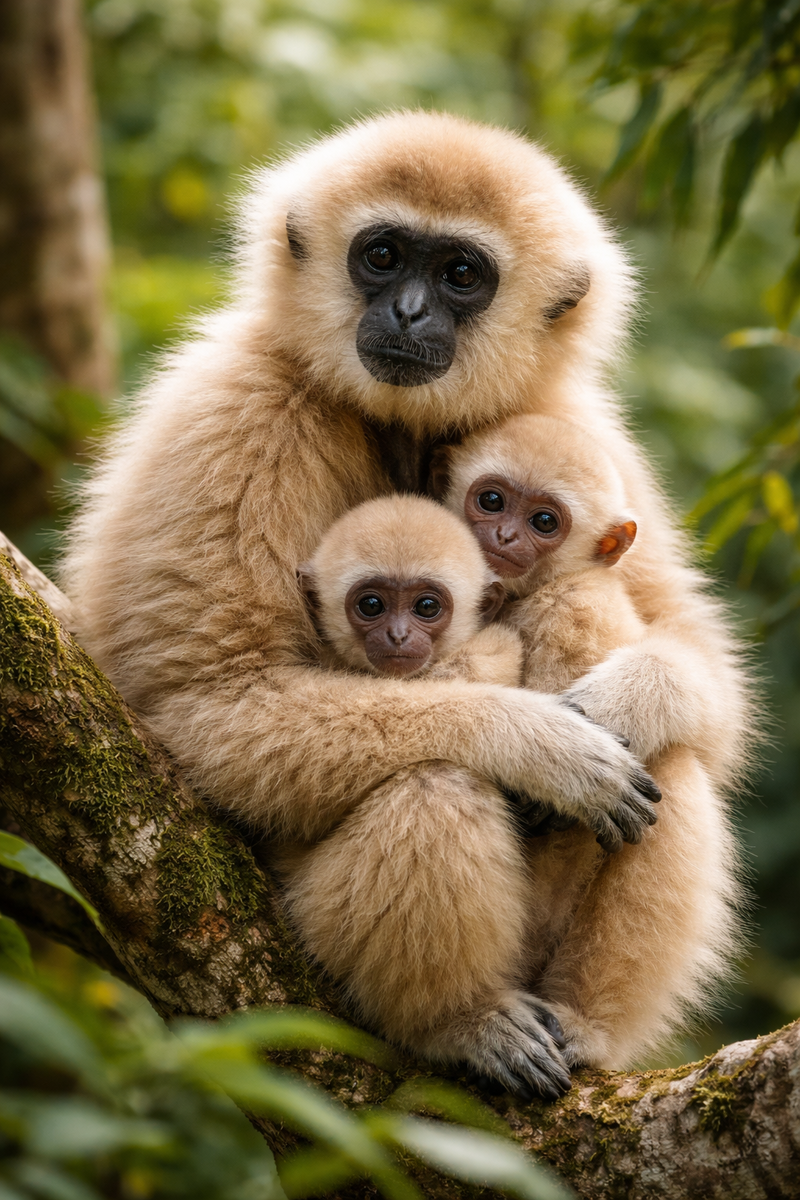 В отличие от многих приматов, гиббоны чаще всего образуют устойчивые пары на годы, а иногда и на всю жизнь. Почти как в романах, только с хвостами… точнее, без них. 3. Они — акробаты джунглей