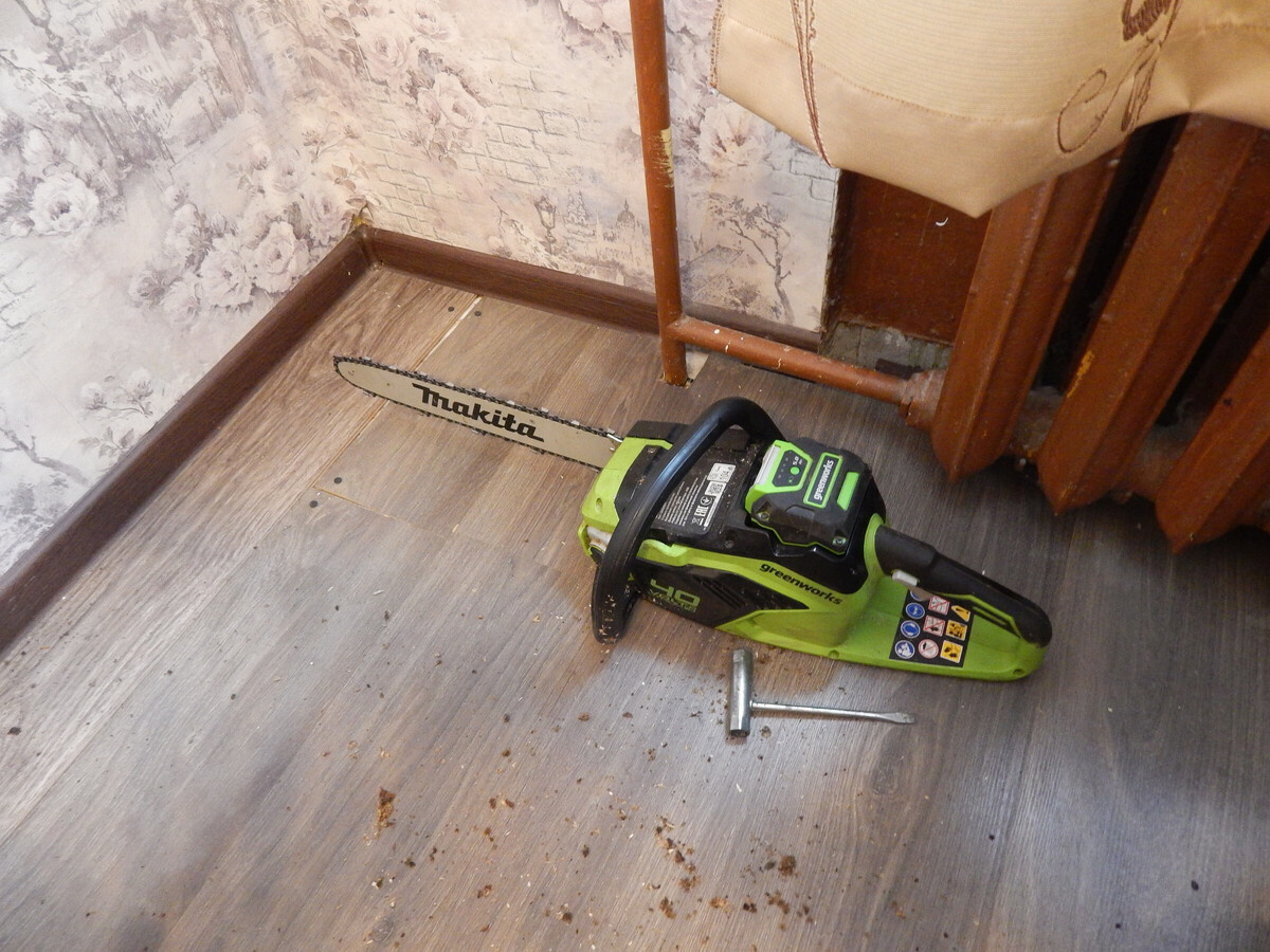 Вчера, как известно, я был немного... в шоке. Оказалось, что новая шина для электропилы, которую я заказал ... да, совместимая, но немного не та, цепь не садится нормально. Я бегал на стройрынок и купил схожу с погнутой по всем габаритам "Макиту". Я ещё не знал, что с этой шиной будут другие проблемы, т.к. она очень тяжёлая.
