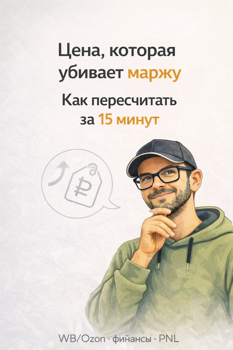 В этой статье — простой способ пересчитать цену за 15 минут: от целевой маржи + комиссия/логистика + реклама + возвраты. Без сложной теории, только то, что можно повторить на своих цифрах.