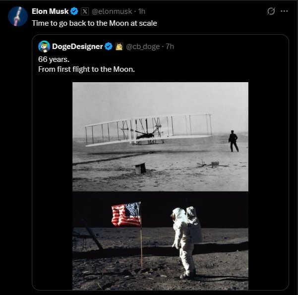 Пришло время для масштабного возвращения на Луну, считает Илон Маск