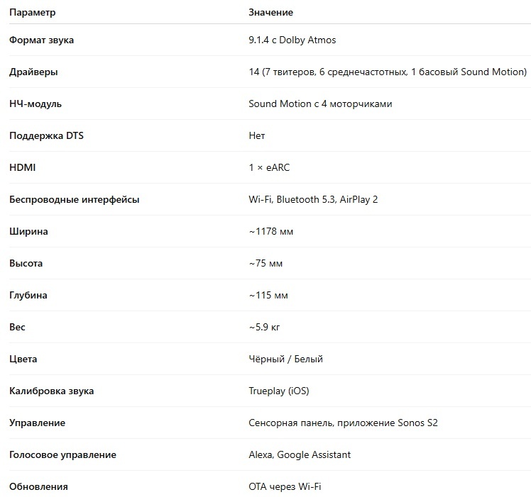 - Легко объединяется с другими компонентами Sonos‑системы.