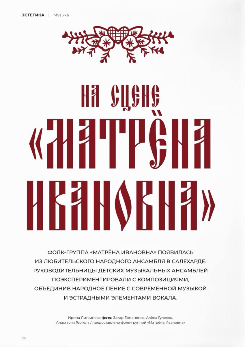 »? В свежем номере вышла большая статья про фолк-группу «Матрёна Ивановна». Если вы еще не успели её прочитать, то самое время это сделать! Переходите по ссылке и делитесь впечатлениями от прочитанной статьи! 🫶🏻 #ОЦНК #Салехард #КультураЯмала #МатрёнаИвановна