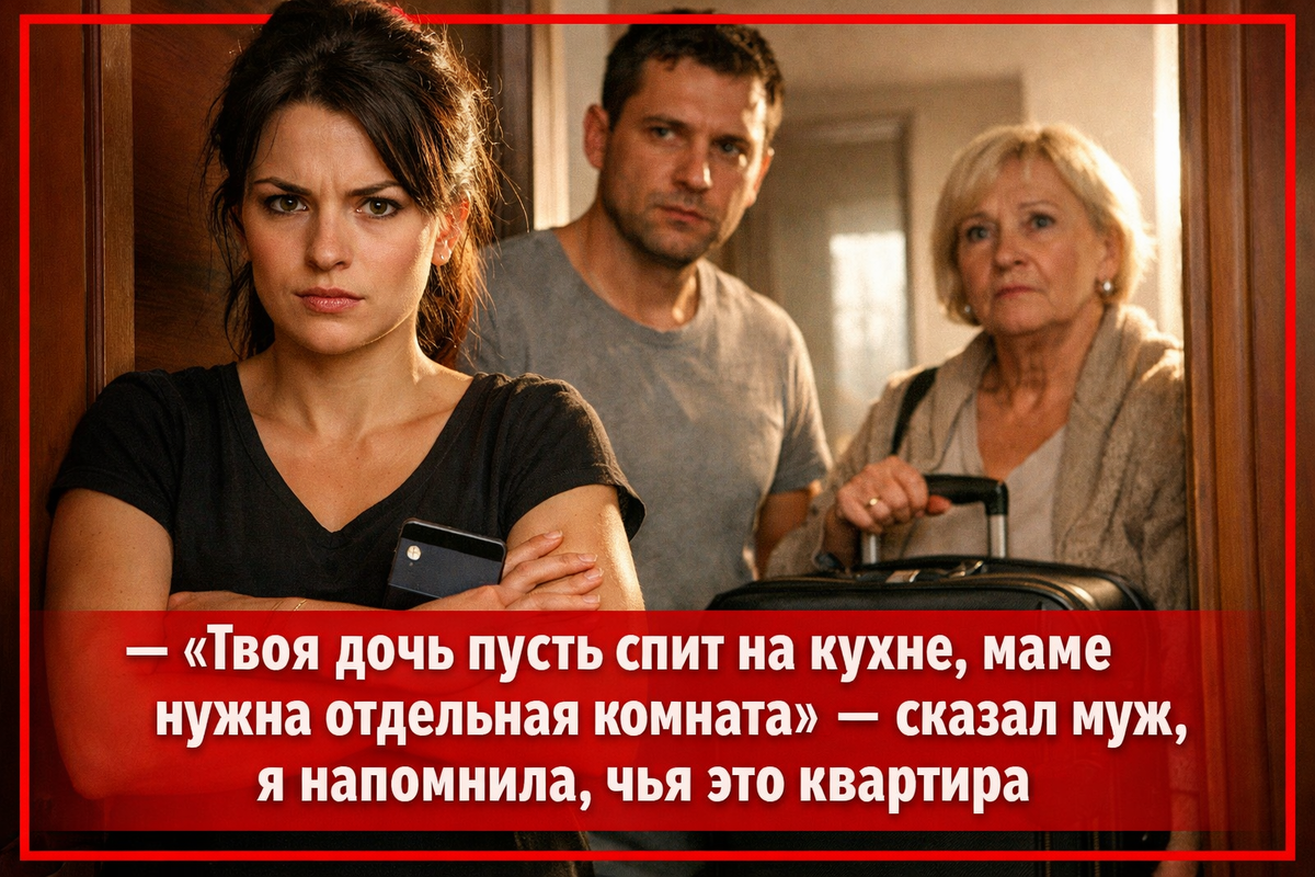 – Моя дочь будет спать на кухне, – повторила она медленно, будто пробуя слова на вкус. – Шестилетний ребёнок. На кухне. Чтобы твоя мама заняла её комнату.