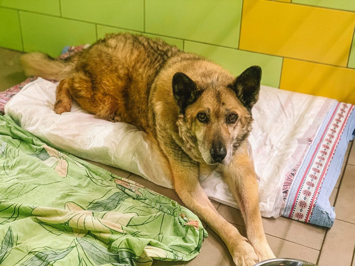 Барон, пожилой и очень больной пес, страдает от серьезных проблем с почками,сердцем и кровью