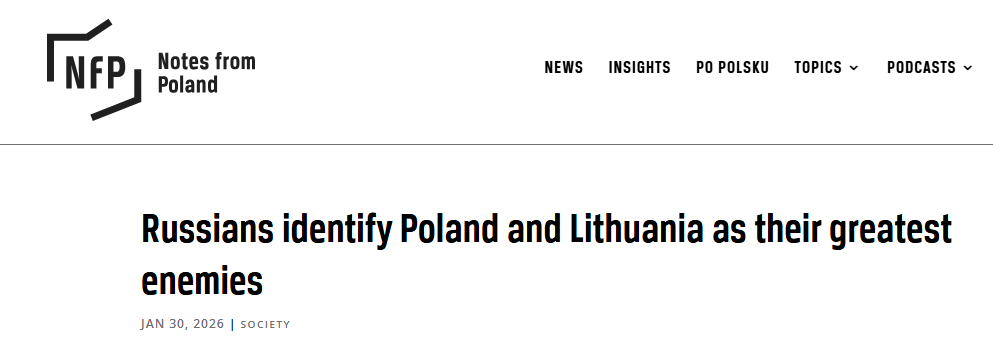 В опросе, проведенном независимым социологическим центром «Левада-центр», россияне считают Польшу и Литву своими главными врагами, согласно списку из 12 стран (не считая Украины), представленному им в ходе исследования.