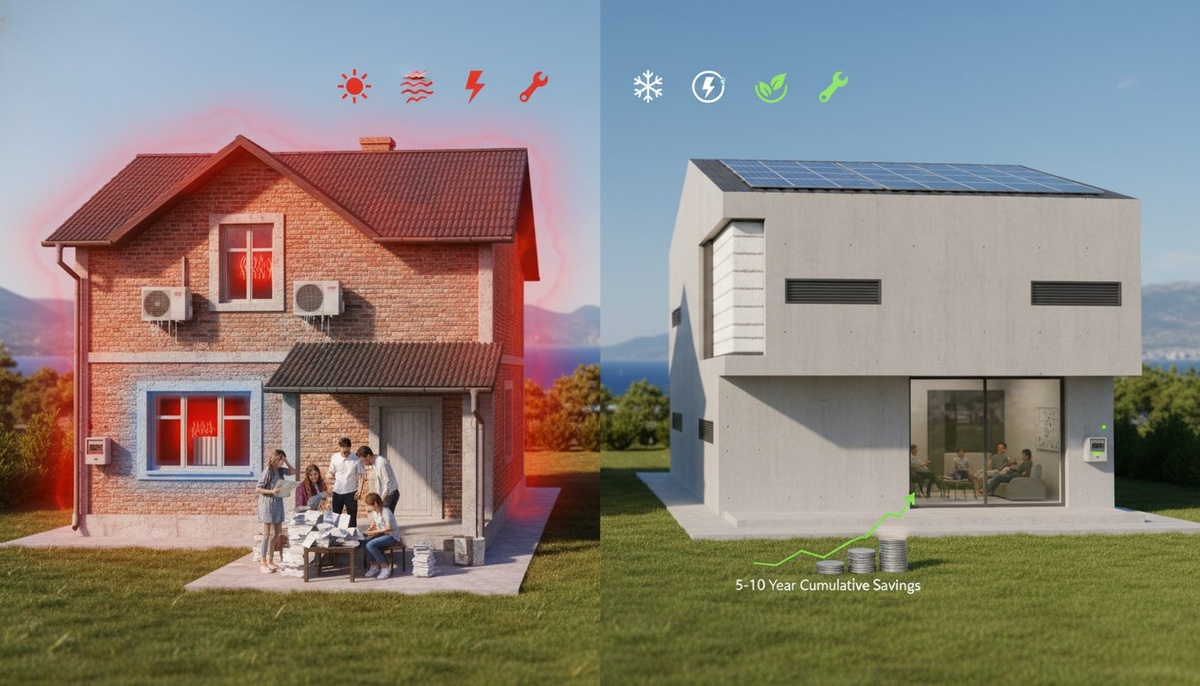 ? Подумайте о счетах после заселения. 🏠 Мы в Box House смотрим дальше: отопление, охлаждение, электричество и ремонт — именно они формируют реальные расходы. Классические дома в Крыму перегреваются летом и теряют тепло зимой — счета растут 🔥❄️ Монолитный SCIP «бетон‑утеплитель‑бетон» работает как термос: медленнее остывает и нагревается, нужна более простая инженерия. За 5–10 лет экономия по счетам может сравняться с льготной ставкой. Выбирая ипотеку, считайте владение на 10–20 лет. Хотите расчёт под ваш проект? Напишите.