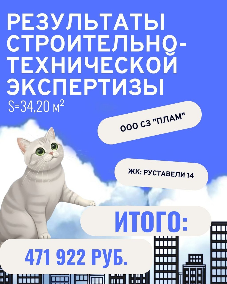 🔑 ➿➿➿➿➿➿➿➿ ➡️ЖК: РУСТАВЕЛИ 14 🟧 ➡️Площадь: 34,20 м² 💸Стоимость устранения строительных недостатков- 471 922 рублей. ❤️При заключении договора на взыскание компенсации с застройщика за некачественную отделку мы оплатим за Вас строительно-техническую экспертизу! Лучше звоните Юсти🆗 ➿➿➿➿➿➿➿➿➿ 📞+7 (936) 333-33-48 ✅@Yustivia 🌐yustivia.ru ➕Яндекс услуги